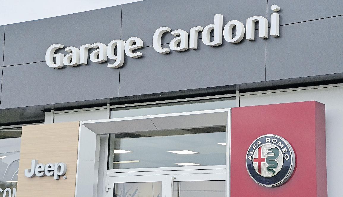 Les emblèmes Alfa Romeo et Jeep caractérisent l'enseigne du Garage Cardoni.