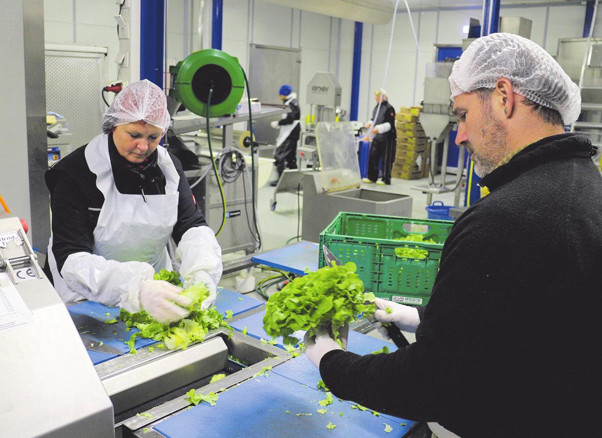 Die Bio-Salate kommen nach der Ernte entweder vorgeputzt in den Handel oder machen erst in der Munsbacher „Cuisine Artisanale“ von Biogros Halt. Hier werden die Köpfe gewaschen, geschnitten und verzehrbereit als fertige Salatmischungen verpackt. Dem kalten Waschwasser wird dabei nur Zitronensäure zugesetzt, um den geschnittenen Salat vor Oxidation zu schützen. Sauerstoffarm verpackt, finden sie als „Biog Salade mixte “ und „Biog Salade gourmande“ den Weg in den Handel. Diese Fertigsalate können zu Hause je nach Geschmacksvorlieben verfeinert werden. Die Angebotsvielfalt ist groß: Neben Blattsalaten bietet die „Cuisine Artisanale“ unter der Marke Biog fertige Quinoa-, Dinkel- und Couscous-Salate sowie einen Salat „Caesar Style“ an – ideal als kleine Mahlzeit, auch „to go“.