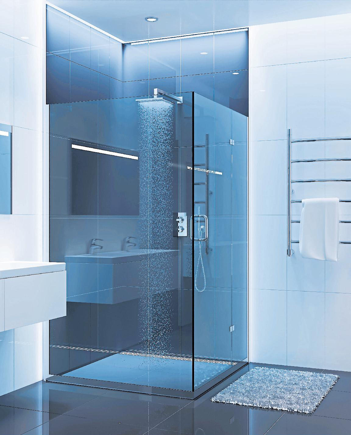 Auch in kleineren Badezimmern ist eine italienische Dusche flexibel einsetzbar – besonders für Personen mit eingeschränkter Mobilität eine Überlegung wert! Fotos: Shutterstock