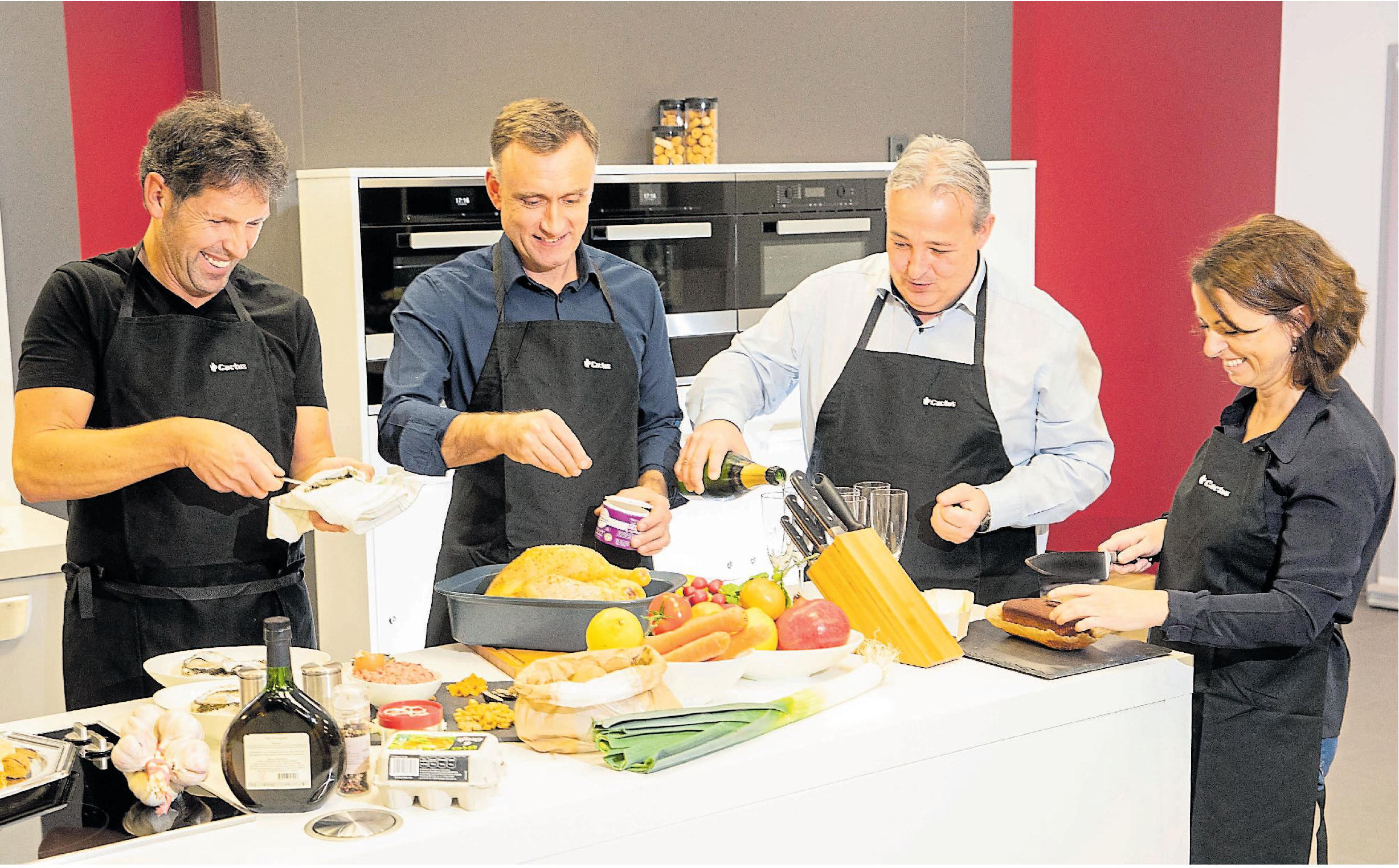 Michel Gallo, Verantwortlicher der Fischabteilung, Yannick De Mesmaeker, Direktor der Metzgerei, Claude Ries, Einkaufsdirektor und Catherine Delsaute, Verantwortliche Bäckerei, Konditorei, Patisserie von Cactus geben Tipps und Anregungen für das Festtagsessen.Steve Eastwood (Fotos)