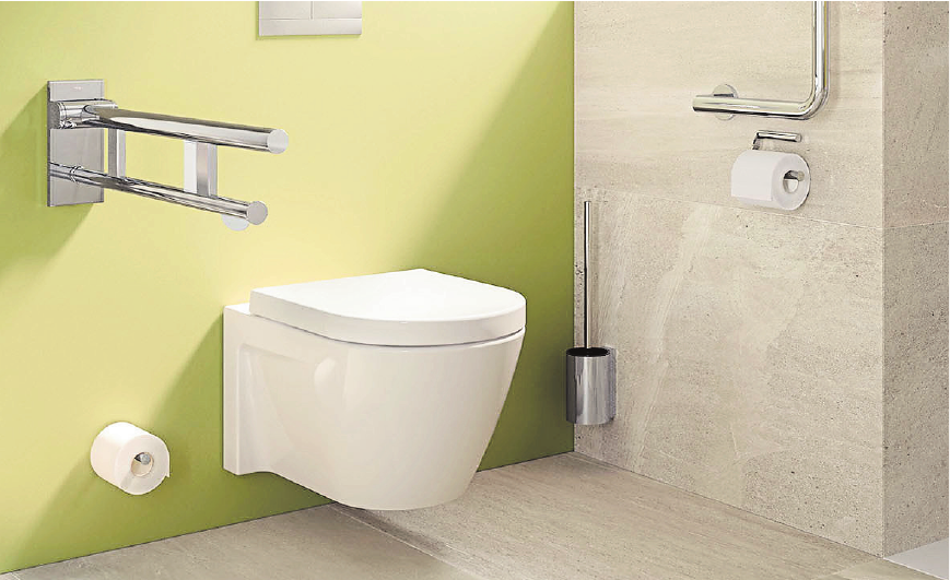 Die Stützklappgriffe verfügen über eine wartungsfreie Bremse, die das Absenken des Griffs dämpft. (FOTOS: DJD/ZVSHK/HEWI)