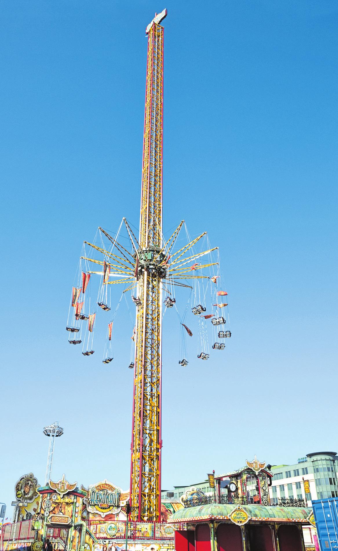War bei der Alpina-Bahn von Astronauten die Rede, so geht eine andere Attraktion unter dem Namen „Aeronaut“ ins Rennen. Auch wenn das Design ganz auf retro setzt, ist die Technik doch so modern, wie sie nur sein kann. Der sogenannte Kettenflieger wurde erst vor einem Monat fertiggestellt. An einem zentralen Turm werden die Besucher in Zweiersitzen bis in über 70 Meter Höhe befördert bevor es wortwörtlich rundgeht.