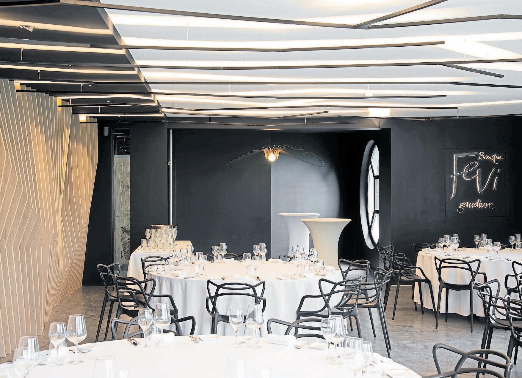 Tout juste deux années après le restaurant, voici la salle des fêtes du Seven Hotel, le Bosque FeVi Glaudium, fraîchement rénovée. La volonté était de garder une cohérence esthétique entre les deux salles. Pari réussi!