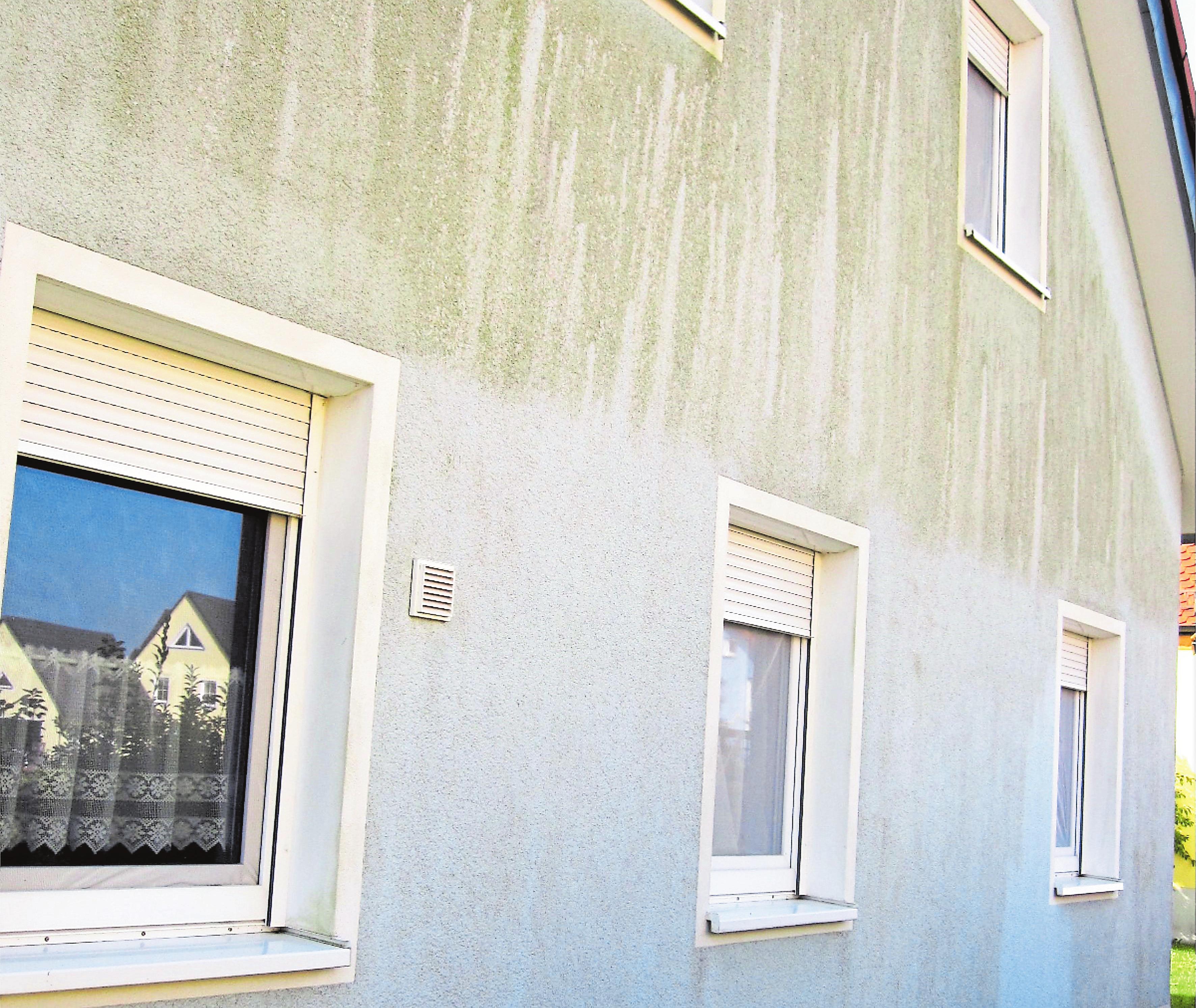 Bei einem grünlichen Algenbefall einer Hausfassade ist bereits nach wenigen Tagen der Befallrestlos verschwunden. Bei Schwarzalgen-, Rotalgen- oder Flechtenbefall sind Veränderungen nach mehreren Monaten sichtbar. Der Kunde kann diese Reinigung mühelos selber ausführen oder den Govalux-Reinigungsservice beauftragen. Die Produkte sind direkt bei Govalux erhältlich.