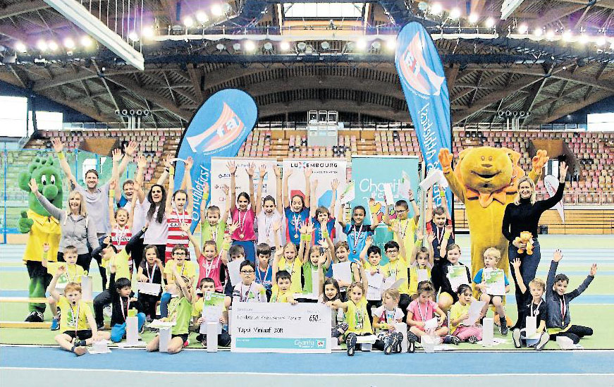 La saison 2019 du Yuppi Mini-Laf, une série de courses ludiques pour enfants, organisée par Cactus en collaboration avec la FLA, vient de se terminer officiellement sur une note philanthropique avec la remise de chèque en faveur de la Fondatioun Kriibskrank Kanner. Grâce à l’engagement des petits coureurs du Yuppi Mini-Laf, 650 euros ont pu être collectés afin de soutenir les enfants malades, puisque Cactus s’engage à faire un don de 1 euro pour chaque tampon collectionné sur le carnet des courses. Yuppi a saisi cette occasion pour honorer les petits coureurs qui ont collectionné le plus de tampons au fil de la saison. 63 enfants ont été conviés à cette cérémonie lors de laquelle Yuppi leur a remis une gourde réutilisable, un diplôme de participation et une médaille pour les récompenser de leurs efforts exemplaires et de leur solidarité envers les enfants malades. En amont de la remise de chèque et des prix, les petits athlètes ont pu se défouler durant toute la matinée dans les nombreux ateliers sportifs mis en place et encadrés par les bénévoles de la FLA. Lancer de précision, sprint, saut en hauteur, circuit agilité, lancer de vortex, circuit de motricité, saut en longueur… les petits athlètes ont pu s’essayer dans une foule de disciplines différentes. Yuppi et Poldi se réjouissent de l’engagement des petits coureurs et remercient tous les enfants ayant enfilé au moins une fois leurs baskets pour la bonne cause. Yuppi attend tous les enfants, âgés de 5 à 12 ans, le 23 février à Kockelscheuer pour le «Cactus Mini-Bëschlaf», le premier rendez-vous de la saison 2020 du Yuppi Mini-Laf. C.