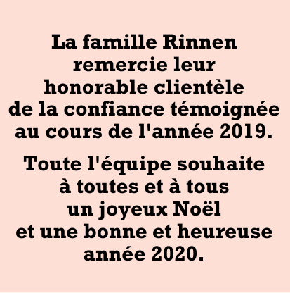 La famille Rinnen remercie leur honorable clientèle de la confiance témoignée au cours de l'année 2019.