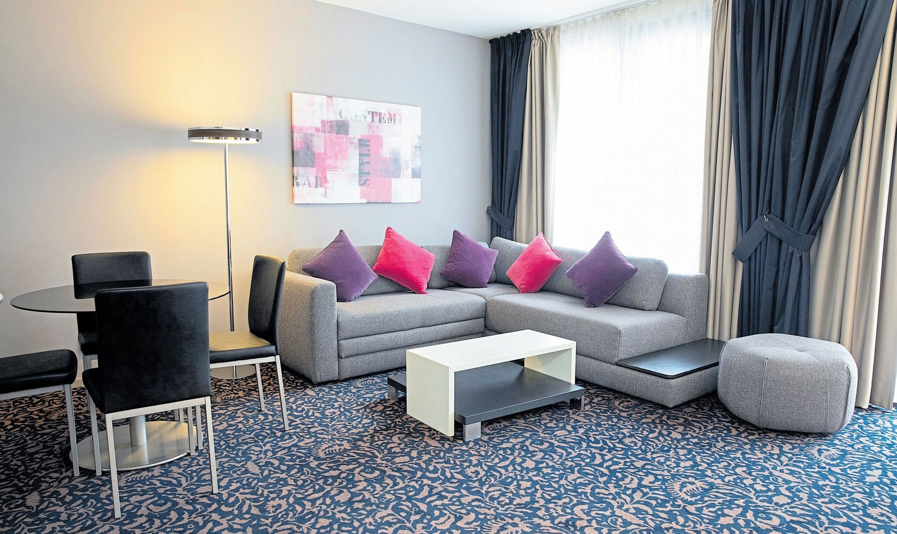 L’établissement n’est pas pour rien le plus grand complexe hôtelier du Luxembourg: 325 chambres et studios, entièrement rénovées au cours des années, attendent les hôtes. Elles possèdent toutes des équipements modernes, que ce soit le wifi haut-débit (gratuit), l’internet sécurisé, un mini-bar, un coffre-fort et la climatisation adaptée aux nouvelles normes. Décorées dans des tons chauds avec du mobilier chic, offrant une ambiance accueillante et moderne, elles offrent un haut degré de confort. Pour des séjours plus longs, les clients peuvent opter pour la location d’un studio avec un petit coin cuisine.