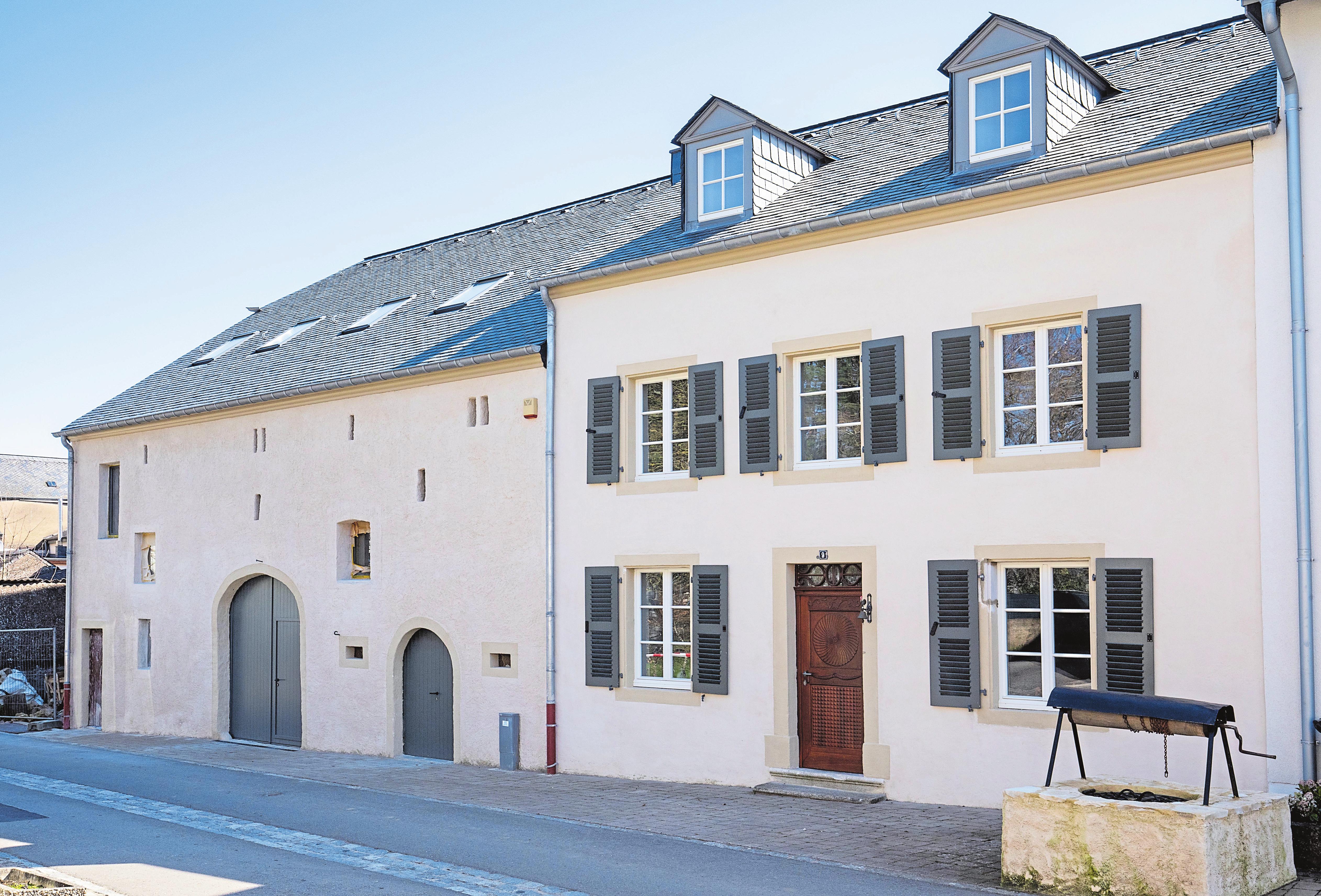 Mit der Unterstützung des „Service des Sites et Monuments Nationaux“ wurden Haus und Scheune daraufhin wieder instand gesetzt. Zur Anwendung kamen vor allem althergebrachte Materialien und Techniken. Der Unterbau des Eichenholzparketts (auf Lagerhölzern liegend) im Erdgeschoss wurde aus einer Bodenplatte auf Basis von „Limecrete“ (eine diffusionsoffene Mischung aus Kalk, gebrochenem Sand und dämmenden Blähtonkügelchen) realisiert, die wiederum auf einer 25 Zentimeter Glasschotterschicht aufliegt. Eine sechs Zentimeter starke, mineralische Innendämmung wurde an den Außenmauern angebracht. Der Dachstuhl wurde erneuert und mit 30 Zentimetern Holzfaserdämmung versehen. Die alten Holzbalken der Decken wie auch die Innentüren blieben erhalten und verleihen dem Haus seine ursprüngliche Atmosphäre. Das Gleiche gilt für die historische Raumaufteilung bestehend aus Hausgang, Stuben, Küche und Schlafkammern. Die Fußböden im ersten Stock, ehedem als massive Eichendielen auf den Deckenbalken realisiert und nach unten als Sichtdecke belassen, wurden gesäubert und teilweise erneuert. Alle Innenwände wurden mit Kalkputz und -anstrich versehen. Ein modernes Heizungssystem wärmt das Haus über Böden und Wände.